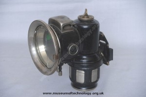 The lamp has a water reservoir and valve at the top half of the lamp. The bottom half contains the carbide. We separate the 2 halves---filling the top half with water---the used carbide in the bottom has to be cleaned out---finding a stick to scrape out the wet, used carbide. Now we can fill the bottom of the lamp with new carbide from the Prince Albert can filled with carbide that we are carrying. Screwing the parts together, we are ready to relight the lamp. First, we open the valve to allow some water to drip onto the carbide in the bottom. This generates acetylene gas---the lamp reflector has a flint and spark wheel mounted on the edge. The lighting procedure is simple. Holding the bottom of the lamp with your left hand---place your right hand over the reflector---wait a few seconds to allow the gas to accumulate---move your head sideways to rotate the spark wheel. The resulting spark ignites the lamp with a satisfying bang and the lamp is relit. Now just adjust the flame to the desired length with the water valve.